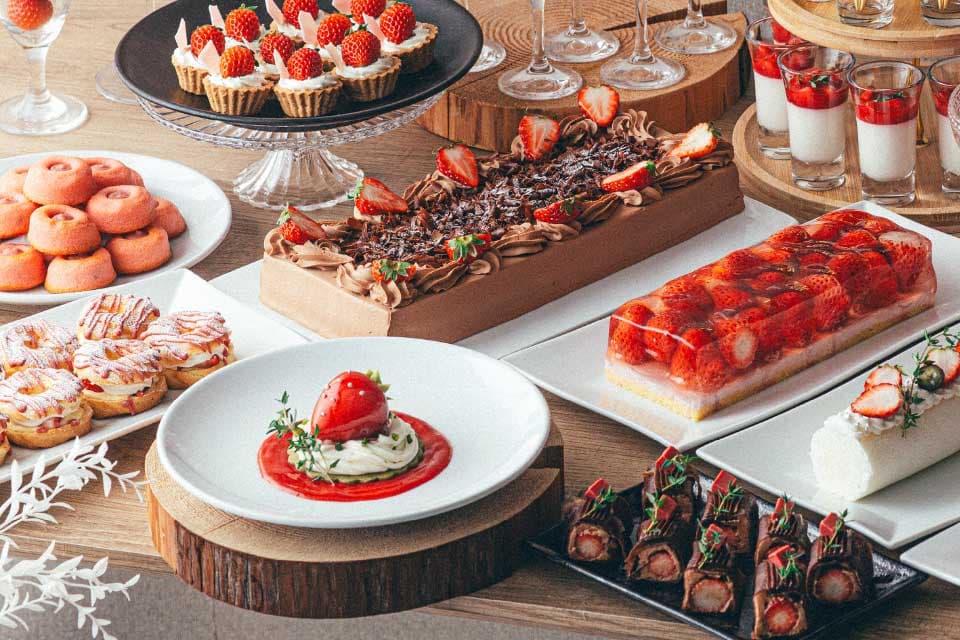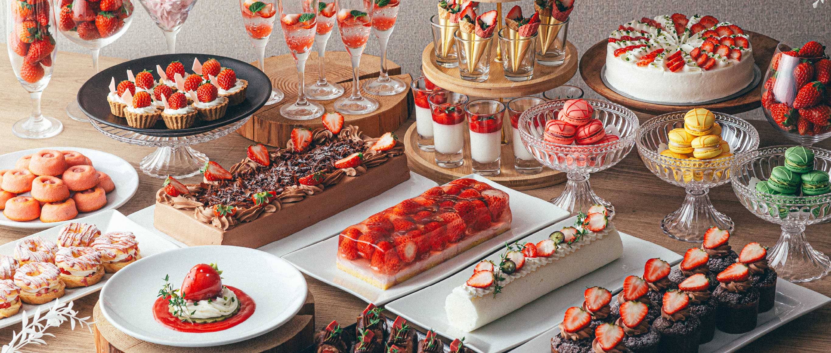 パティシエ特製のいちごスイーツとお料理をビュッフェスタイルで。旬のいちごを心ゆくまでお楽しみいただけます。